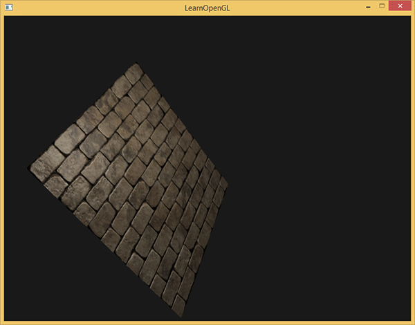 在一个简单的朝向正z轴的平面上,我们可以用这个diffuse纹理这个法线贴图来渲染前面部分的图片。要注意的是这个链接里的法线贴图和上面展示的那个不一样。原因是OpenGL读取的纹理的y(或V)坐标和纹理通常被创建的方式相反。链接里的法线贴图的y(或绿色)元素是相反的(你可以看到绿色现在在下边);如果你没考虑这个,光照就不正确了(译注:如果你现在不再使用SOIL了,那就不要用链接里的那个法线贴图,这个问题是SOIL载入纹理上下颠倒所致,它也会把法线在y方向上颠倒)。加载纹理,把它们绑定到合适的纹理单元,然后使用下面的改变了的像素着色器来渲染一个平面: