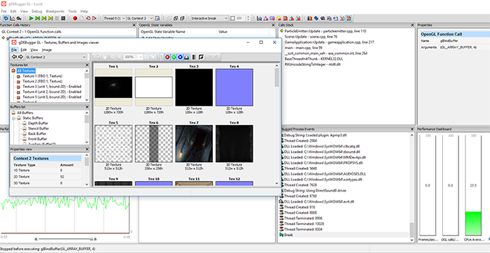 gDebugger是一个非常易用的跨平台OpenGL程序调试工具。gDebugger会在你运行的OpenGL程序边上,提供OpenGL状态的详细概况。你可以随时暂停程序来检查当前状态,纹理内容以及缓冲使用。你可以在这里下载gDebugger。
